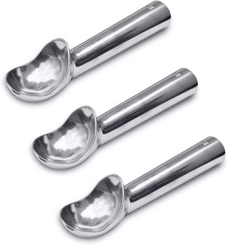 مجرفة الآيس كريم 1/1.5/2/2.5/3/4OZ بيضاء لامعة من الألومنيوم الفضي بمقبض يعمل على توصيل الحرارة مجرفة آيس كريم معدنية غير لاصقة
