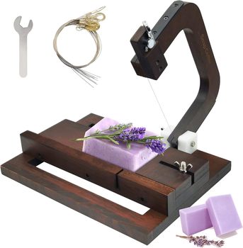 أداة قطع صابون خشبية من خشب جوز الهند الأسود مع سلك أداة قطع صابون خشبية قابلة للتعديل مع مقياس الحجم قطاعة أسلاك فردية للصابون المصنوع يدويًا