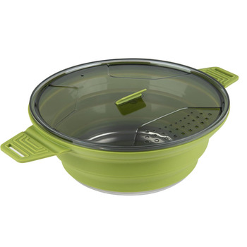 وعاء تخييم قابل للطي وعاء طهي محمول من السيليكون المقاوم للصدأ أسفل التخييم مع غطاء للمشي لمسافات طويلة